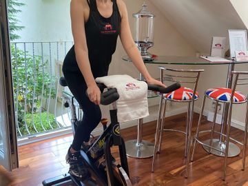With Lesley, 3 minute full body work out on a spin bike