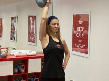 with Lesley, 30 minute full body workout using kettles or dumbbells of various manageable weights to improve muscle tone and increase streng...
